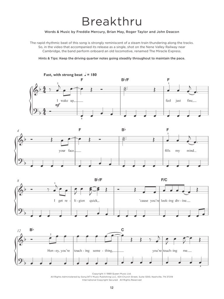 16 coups de la Reine, arrangés pour piano facile avec paroles et des accompagnements d'accords. Comprend des notes chanson et des conseils utiles et des conseils pour vous aider à parfaire vos performances.