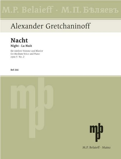 New edition of four songs by Russian composer Alexander Borodin. The songs were first published by Rob. Forberg. Includes original Russian text, French singing text from the period, and translations to English and German.