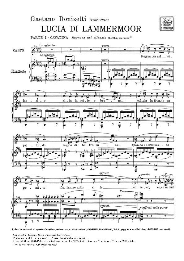 Regnava Nel Silenzio (Dall’Opera Lucia Di Lammermoor) Per Canto E Pianoforte – Soprano DONIZETTI GAETANO