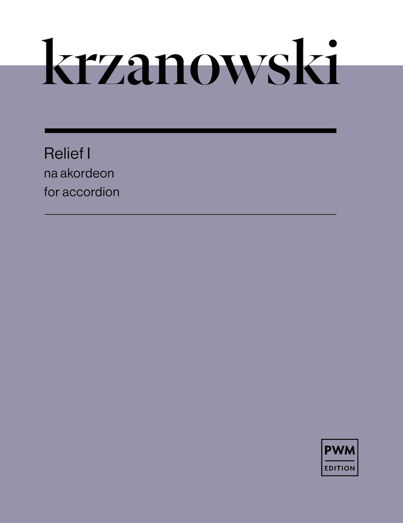 Composed in Czechowice-Dziedzice, in 1984, Relief I for accordion opens a cycle of nine works for solo or chamber forces. This work is of a sarcastic character, and its multi-segmented form consists of the alternating of dissonant ‘quick’ segments, dominated by sevenths, with two-part dolce segments led in contrary motion, as well as series of chords repeated with a surprising nebbioso (nebulous). Relief I is a work full of nervous tension, meticulously built up, and broken variant phrases, with a striking conclusion on a falling cluster, ending with an F sharp major chord – like the many faces of a clown: thumbing its nose, sneering, reflective, mocking, pulling silly faces and… triumphing. This composition was dedicated to friends from France – the Menards and their children. It was first performed by the composer during the Summer Courses for New Music in Darmstadt, in August 1988.