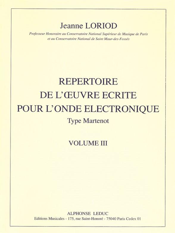 Repertoire De L’Oeuvre Ecrite Pour L’Onde Electronique Type Martenot Vol.3 LORIOD J.