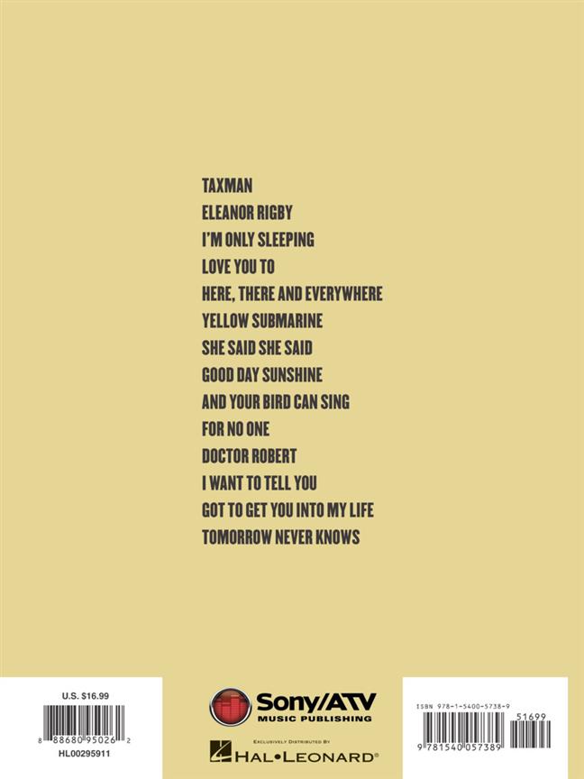This songbook provides P/V/G arrangements of all 14 tracks from the 1966 Beatles album that includes classic hits like: Eleanor Rigby - Good Day Sunshine - Got to Get You into My Life - Here, There and Everywhere - I Want to Tell You - Taxman - Yellow Submarine - and more!