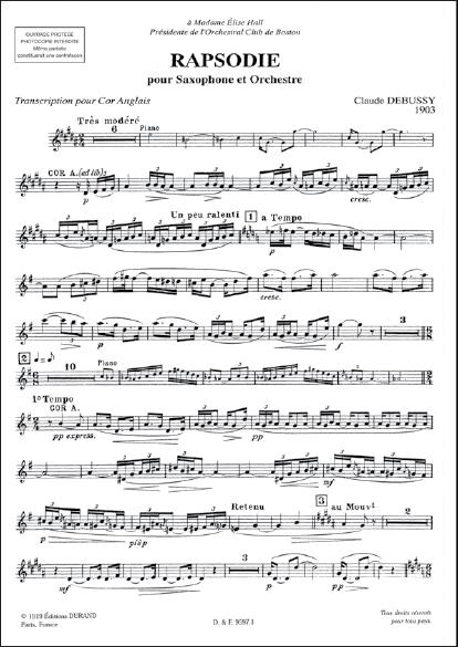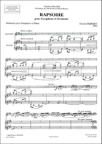 Rhapsodie Pour Saxophone Et Orchestre DEBUSSY CLAUDE