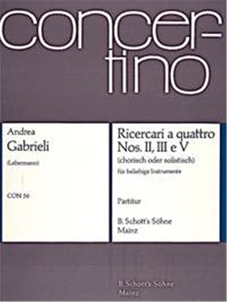 Ricercari A Quattro GABRIELI ANDREA Tout Instrument (3 Altos et Basse Continue Violon, Schott Music 26,70€
