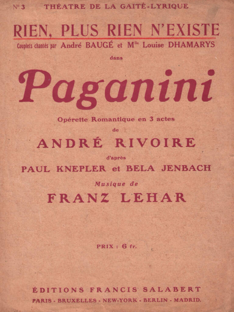 Rien, Plus Rien N’Existe Varietes Chant Seul LEHAR FRANZ