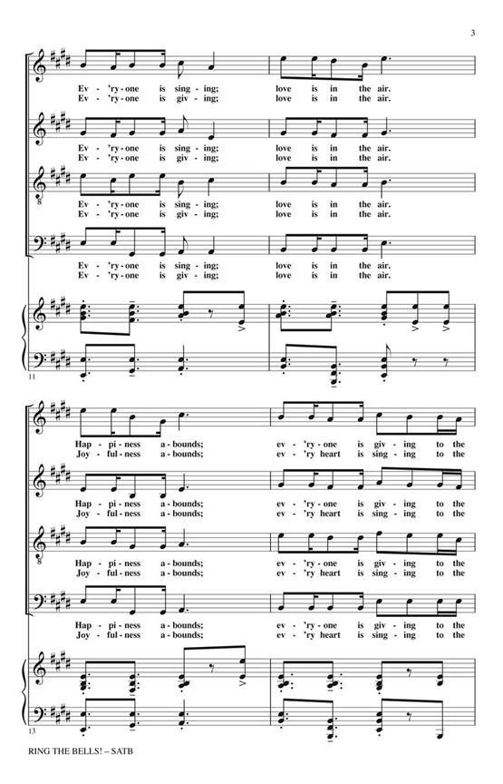 Le bonheur est omniprésent dans cette œuvre originale joyeuse enregistrée par la Baltimore Choral Arts Society. Un excellent choix pour les concerts communautaires, il peut être joué au piano ou avec une orchestration colorée et contemporaine ! Disponible séparément : SATB. Partition et parties (fl 1-2/picc, ob 1-2, cl 1-2, bn 1-2, hn 1-2, tpt 1-3, perc 1-2, vn 1-2, va, vc, db) disponibles en édition imprimée et en téléchargement numérique. Durée : environ 2:40.