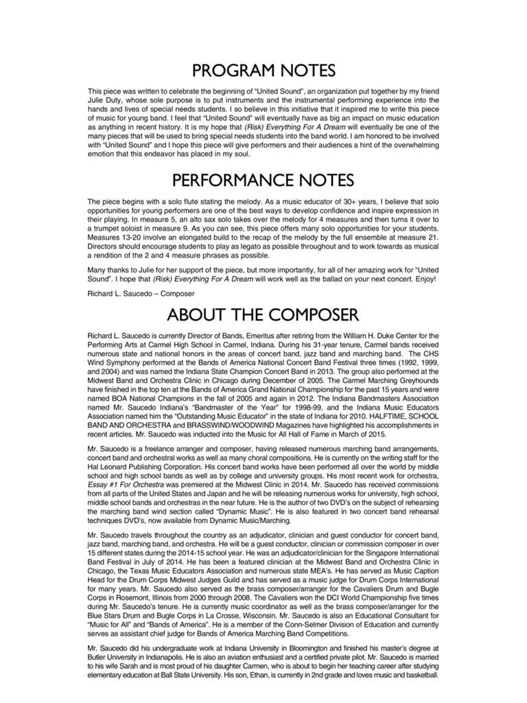 (Risk) Everything for a Dream SAUCEDO RICHARD L.