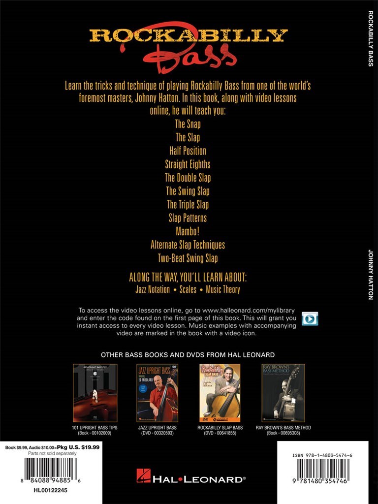 Learn the tricks and technique of playing rockabilly bass from one of the world's foremost masters, Johnny Hatton. In this book, along with video lessons online, he will teach you: the snap - the slap - the hand positions - straight eighths - the double slap - the swing slap - the triple slap - slap patterns - mambo - alternate slap techniques - two-beat swing slap. Plus, you'll learn about jazz notation, scales and music theory.