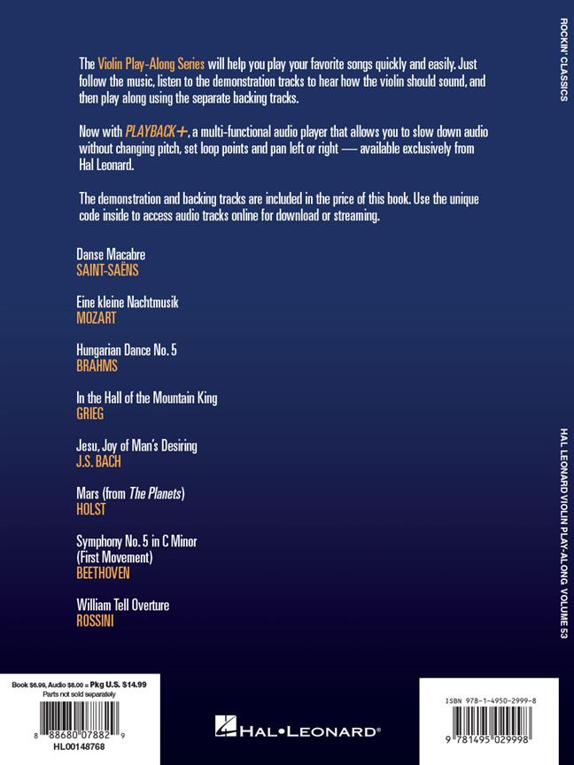 The Violin Play-Along series will help you play your favorite songs quickly and easily. Just follow the music, listen to the demonstration tracks to hear how the violin should sound, and then play along using the separate backing tracks. The purchase price includes online access to audio for download or streaming.