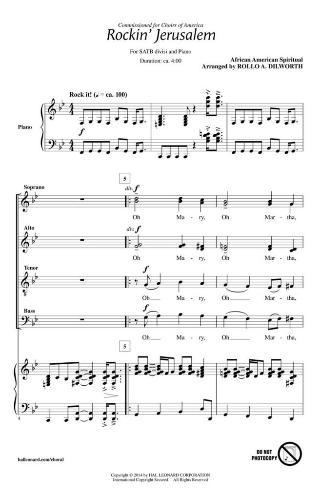 Ce spiritual afro-américain est un chant de célébration, d’anticipation, de liberté et d’espoir. Avec les références à la nouvelle Jérusalem telle que décrite par Jean le Révélateur dans le Nouveau Testament, les esclaves afro-américains pouvaient espérer une terre céleste où ils ne seraient plus liés par les liens de la servitude. Des lignes vocales rythmiques et énergiques sont superposées à l’accompagnement pulsant pour offrir une excellente mise en valeur chorale.