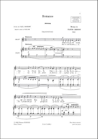 Romance, Pour Mezzo-Soprano Et Piano DEBUSSY CLAUDE