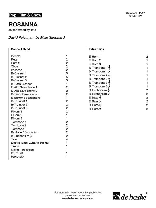 Rosanna (Arr. Mike Sheppard) PAICH DAVID