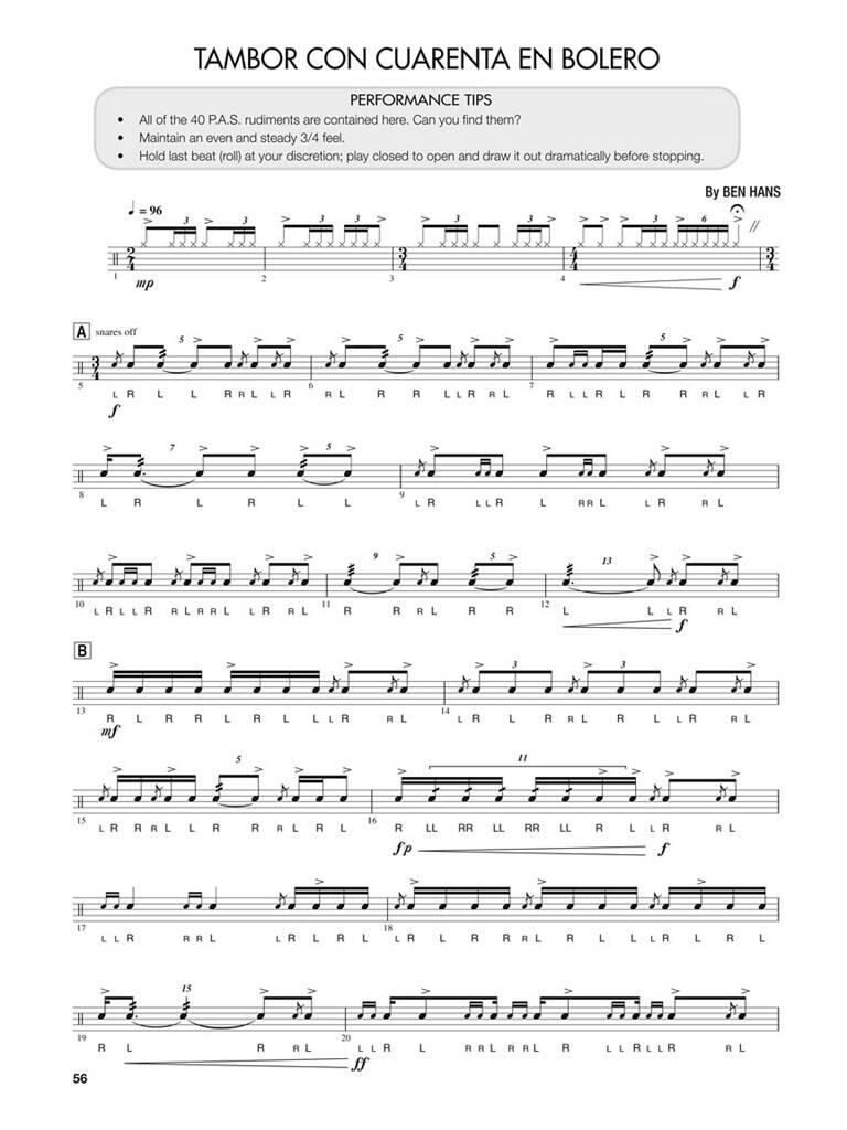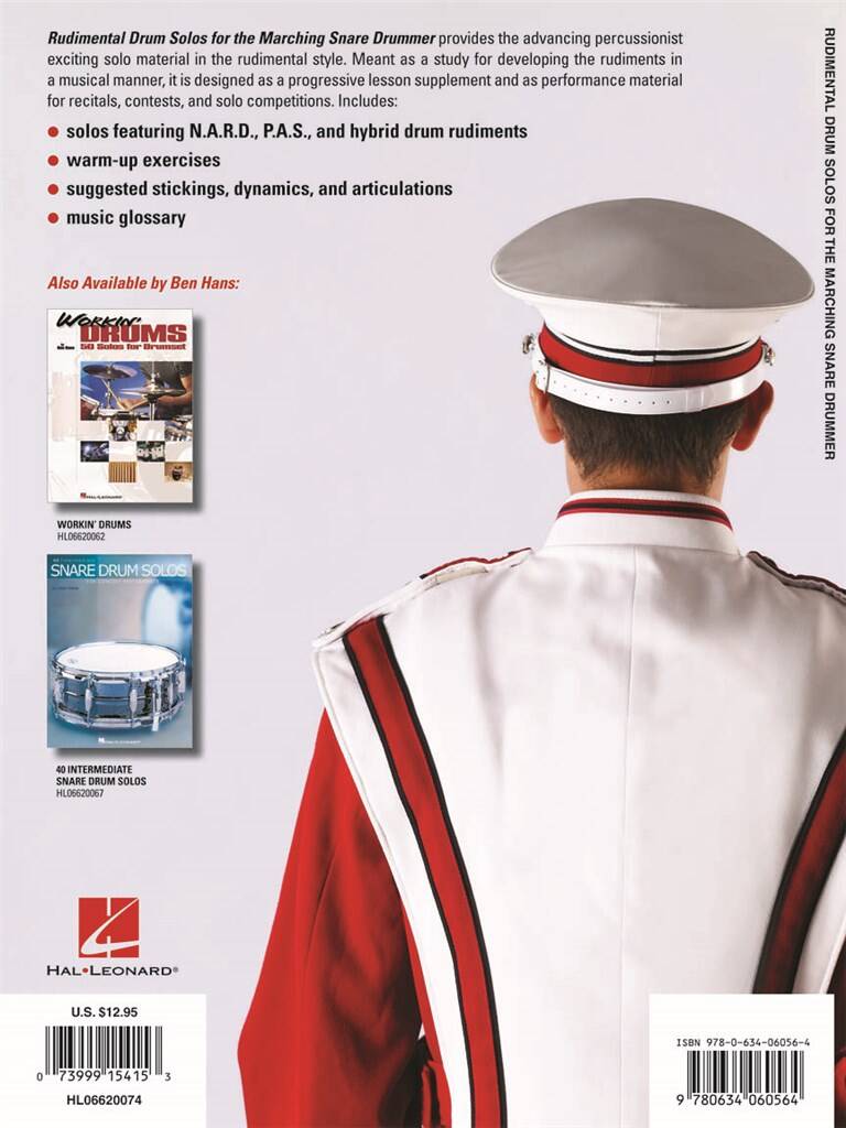 Rudimental Drum Solos pour la caisse claire de marche offre au percussionniste progressant un soliste de solo excitant dans le style rudimental. Conçu comme une étude pour développer les rudiments de manière musicale, il est conçu comme un complément progressif de cours et comme matériel de performance pour des récitals, concours et compétitions solo. Comprend : des solos avec N.A.R.D., P.A.S. et des rudiments de batterie hybride ; exercices d’échauffement ; des blocages, dynamiques et articulations suggérées ; un glossaire musical ; et plus encore.