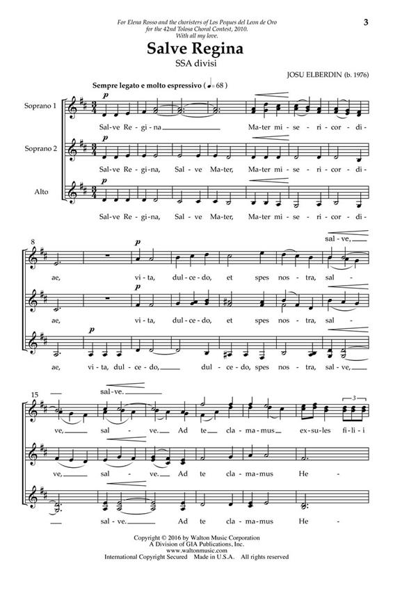 Written for the 2010 Tolosa (Spain) Choral Contest, this hymn to the Virgin Mary uses full sound and dense harmonies to celebrate Mary's gift to the world. The composer's gift for crafting timeless melodies is apparent in this work. A great choice for more advanced treble choirs.