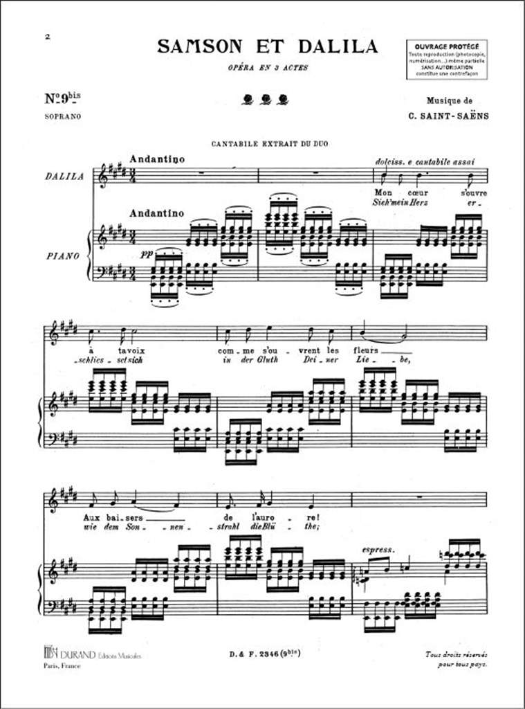 Samson Et Dalila N 9B Fr/All Soprano/Pno (Mon Coeur S’Ouv) SAINT-SAENS CAMILLE