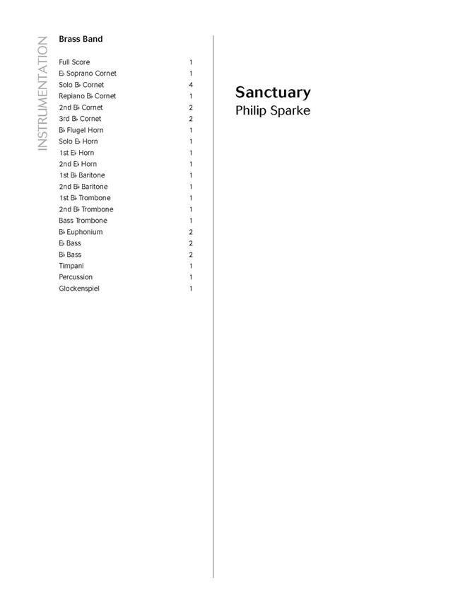 Sanctuary est une commande de l’ensemble néo-zélandais Eastern Bay où Plenty Brass, qui l’a interprétée en tant qu'oeuvre libre «contemplative» au Championnat national de brass bands de Nouvelle-Zélande 2018. La pièce s’oeuvre avec un solo de cornet expressif évoquant un hymne. Un passage central un peu plus rapide mène un changement de tonalité avant un retour majestueux la mélodie du début, cette fois faisant appel l’orchestre entier. Après un climax chargé d’émotion, la musique s’apaise pour aboutir une conclusion sereine.