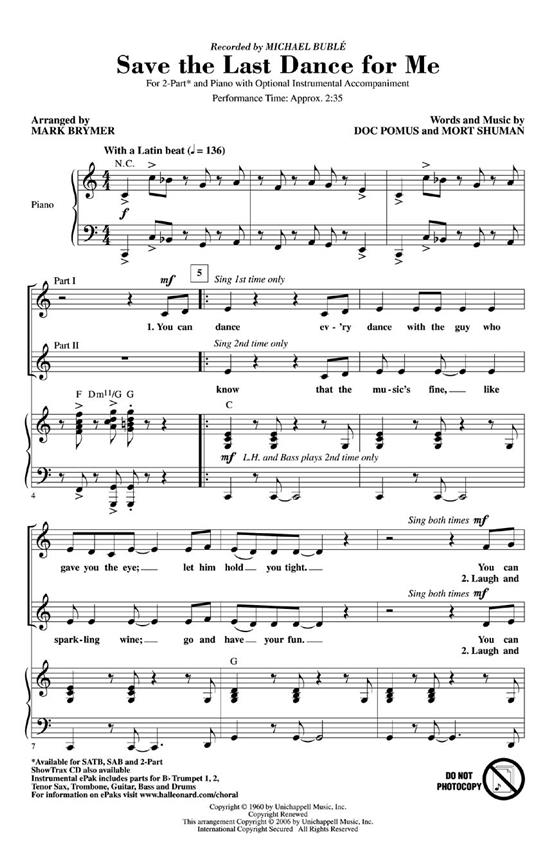 Save The Last Dance For Me. 2-Part BRYMER MARK