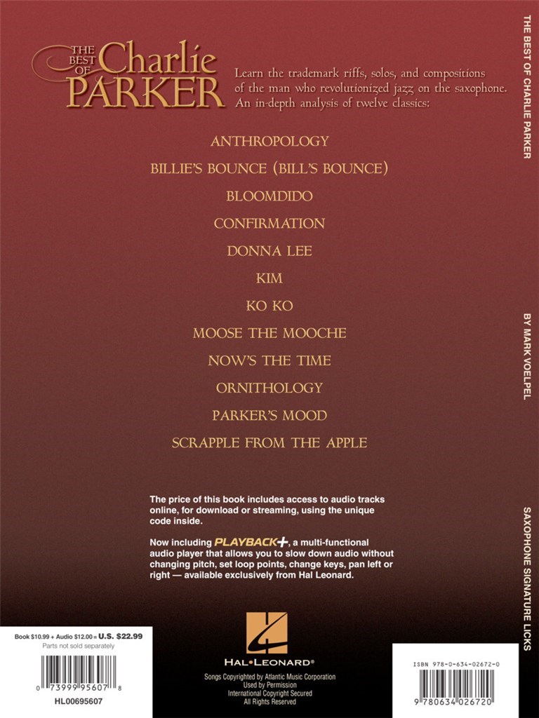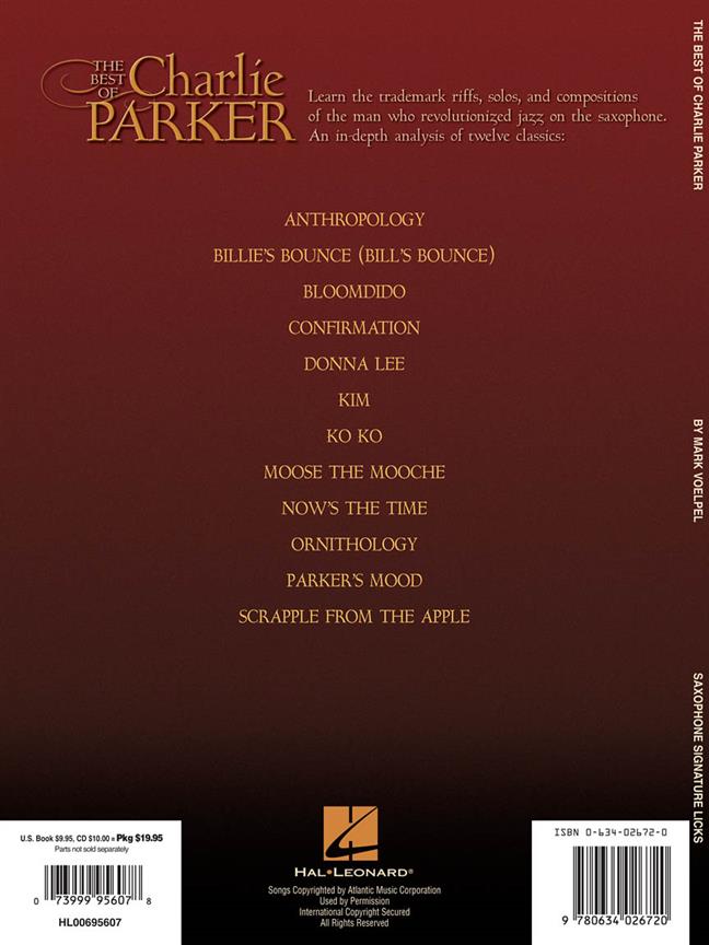 Retrouvez le best-of des plus grands classiques de Charlie Parker. Apprenez au saxophone les riffs, les solos, les compositions de l'homme qui a révolutionné le jazz.