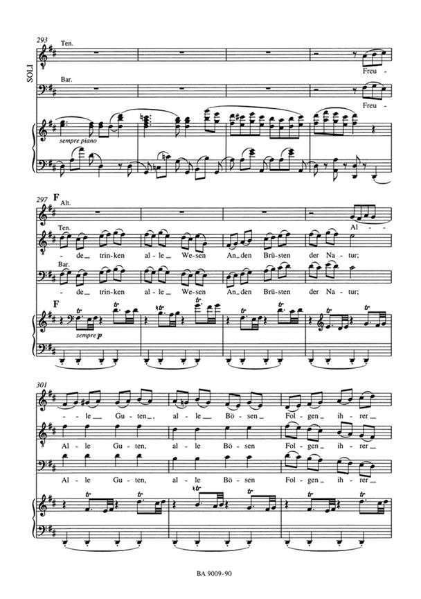 With final chorus 'An die Freude' (Ode to Joy) Between 1996 and 2000 Bärenreiter published scholarly-critical editions of Beethoven 's Nine Symphonies edited by the first class musicologist Jonathan Del Mar. The editorial process was a huge undertaking because of the complex source situation regarding Beethoven 's Symphonies culminating in the Choral Symphony (No. 9) which came down to the publisher in nearly 20 different sources. So it was not surprising that Bärenreiter's new Urtext edition caused a considerable stir in the music world. Since publication, Del Mar's edition enjoys the unabashed praise of conductors, performers andcritics alike and has become the most widely used publication of the Beethoven Symphonies which can be heard not only every day in concert halls, but also on CD recordings by John Eliot Gardiner, David Zinman, Jos van Immerseel and Claudio Abbado. Full scores, study scores and complete performance material to Beethoven ’s Nine Symphonies are available for sale.