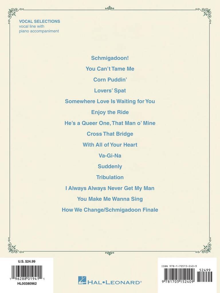 1. Suddenly 2. Schmigadoon! 3. You Can’t Tame Me 4. Corn Puddin’ 5. Lover’s Spat 6. Somewhere Love Is Waiting For You 7. Enjoy The Ride 8. He’s A Queer One, That Man O’ Mine 9. Cross That Bridge 10. With All Of Your Heart 11. Va-Gi-Na 12. Tribulation 13. I Always Always Never Get […]