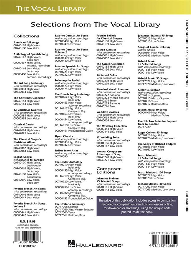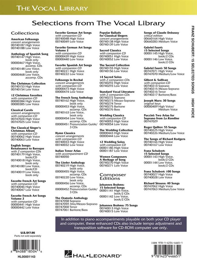 Schubert 15 Selected Songs High Voice/Piano 2 Cd’s SCHUBERT FRANZ