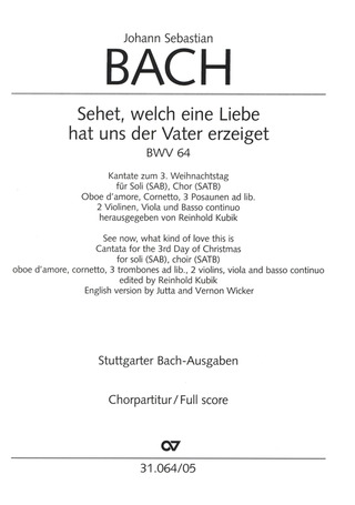 Sehet, Welch Eine Liebe Hat Uns Der Vater Erzeiget BACH JOHANN SEBASTIAN