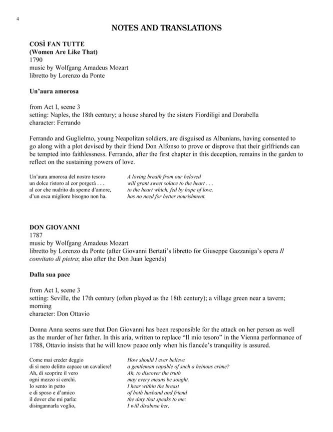 COSÌ FAN TUTTE : Un’aura amorosa - DON GIOVANNI : Dalla sua pace - Il mio tesoro - L’ELISIR D’AMORE : Quanto e bella - Una furtiva lagrima - EUGENE ONEGIN : L’aria de Lenski - RIGOLETTO : La donna è mobile - LE ROI D’YS : Vainemant, ma bien-aimée - LA TRAVIATA : De' miei bollenti spiriti - DIE ZAUBERFLÖTE : Dies Bildnis ist bezaubernd schön.