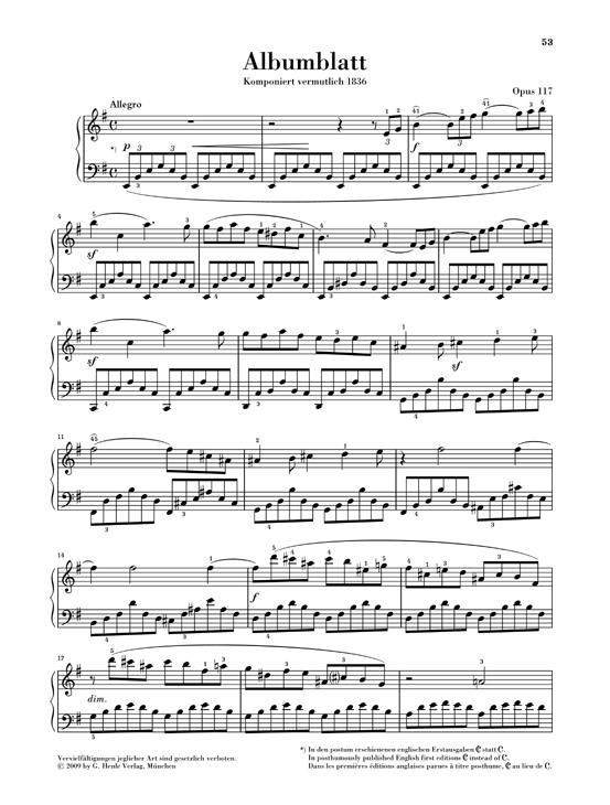 2009, l’«année Mendelssohn», donnait l’occasion à Henle de publier, en plus du volume déjà disponible «Romances sans paroles», HN 327, la quasi totalité des compositions pour piano de ce maître en deux épais volumes (HN 860 et HN 861). Toutes lesoeuvres ont fait l’objet d’un travail éditorial scrupuleux et sont accompagnées de commentaires détaillés prenant en compte l’état actuel des recherches. Henle présente ainsi l’unique édition Urtext au monde, aussi exhaustive, des oeuvres pour piano deMendelssohn. La nouvelle publication remplace ainsi le recueil disponible auparavant (HN 281). En outre, les morceaux pour piano les plus joués de Mendelssohn (op. 14, 16, 54 et 72) existent également en édition séparée de prix modique.