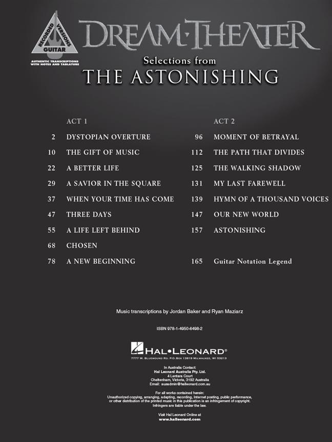 16 transcriptions authentiques avec notes et tablatures tirées de l’album sorti en 2016 par Dream Theater de toutes les parties de guitare jouées par John Petrucci. Comprend : Étonnant - Une vie meilleure - Choisi - Ouverture dystopique - Le don de la musique - Hymne des mille voix - Une vie laissée derrière - Moment de trahison - Mon dernier adieu - Un nouveau départ - Notre nouveau monde - Le chemin qui divise - Un sauveur sur la place - Trois jours - L’ombre ambulante - Quand ton heure est venue.