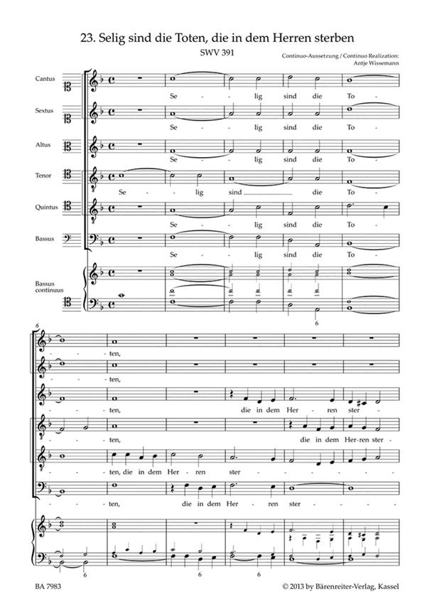 Selig Sind Die Toten, Die In Dem Herren Sterben Swv 391 -Motet- (No. 23 From Geistliche Chor-Music) SCHUETZ HEINRICH