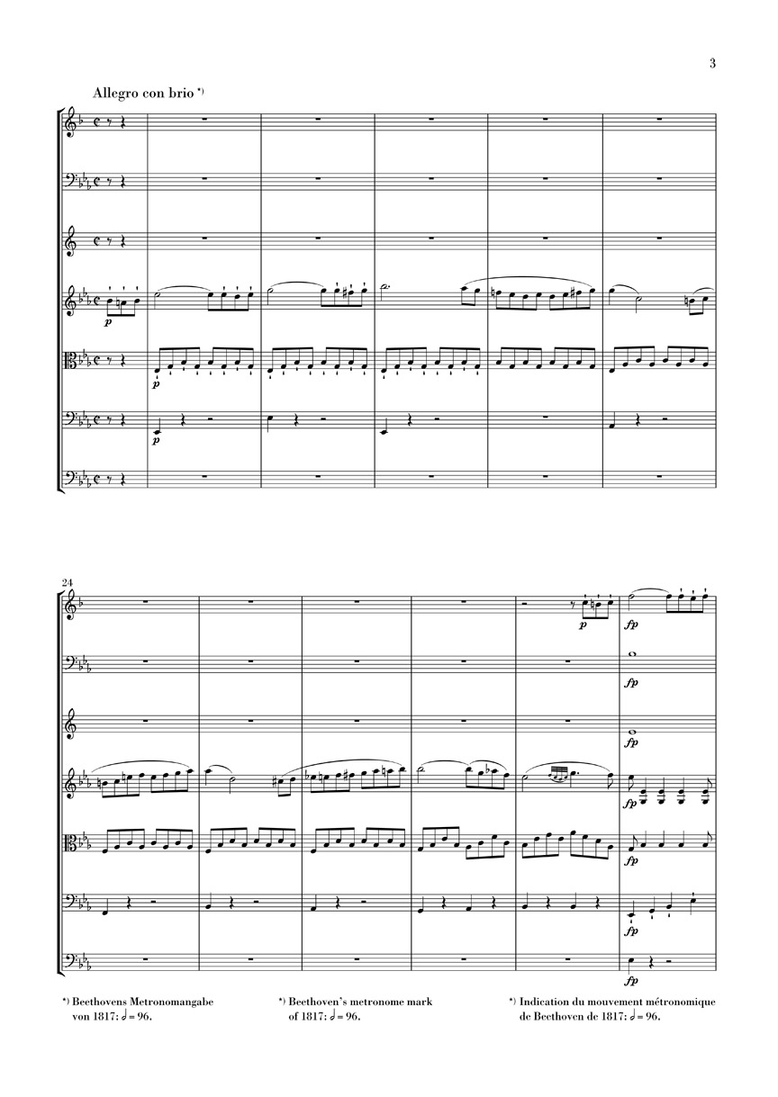 «Sortez donc mon septuor un peu plus promptement … les masses sont dans l’attente». C’est en ces termes que Beethoven, en 1802, demande à son éditeur de se hâter. Son public ne lui tient pas rigueur de cette appréciation peu charmante: aujourd’hui, tout comme l’octuor de Schubert, le septuor pour cordes et vents op. 20 se range parmi les oeuvres pour formation instrumentale importante les plus populaires. Notre édition se base sur la partition du volume musicologique dans l’Intégrale «Beethoven Gesamtausgabe», des oeuvres de Beethoven.