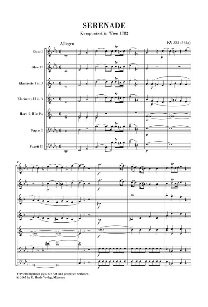 Serenade c minor K. 388 (384a) for 2 Oboes, 2 Clarinets (Bb), 2 Horns and 2 Bassoons