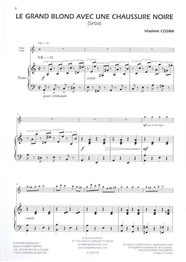 16 titres de Vladimir Cosma de ses plus belles musiques de film pour flute et Piano. Recueil avec CD d'accompagnement et partition de piano.