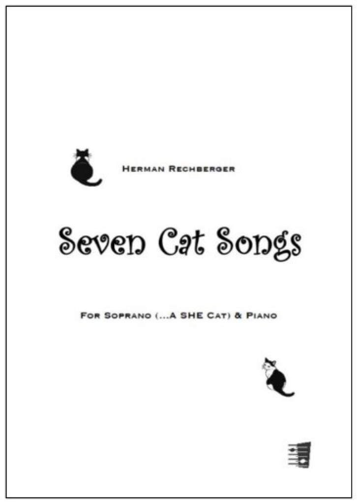 Herman Rechberger (1947–2022) composed the song cycle Seven Cat Songs between Christmas eve 2007 and the 4th of January 2008. They were inspired by his “lovely hairy companions Tosca and Carmen”. The songs exist in two versions, one for soprano (...a SHE cat) and one for baritone (...a He Cat). Have a look inside by clicking “sample”. Duration: c. 20 minutes Contents: I A cat's self portrait (Herman Rechberger) II Cats can sleep anywhere (Eleanor Farjeon) III A cat's memory (Jane Webb) IV A cat's evening prayer (anon.) V A song about two cats (anon.) VI A black-cat luck (anon.) VII All kinds of cats (BJ Boskitt)