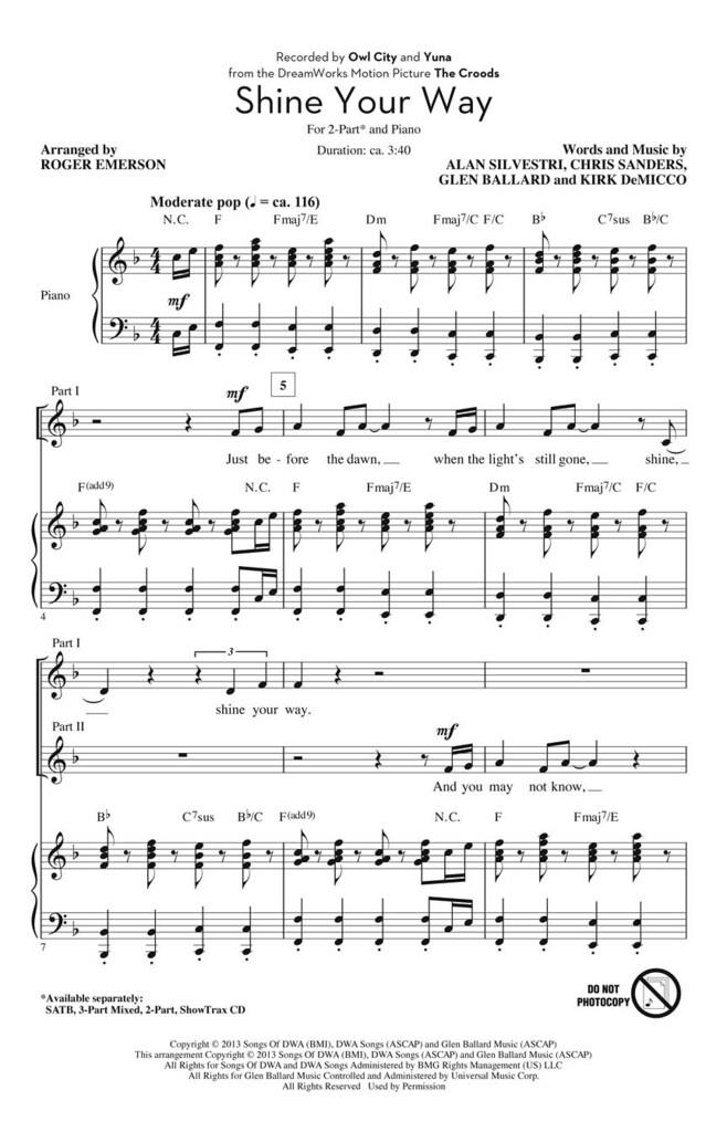 Extrait du film The Croods de 2013, cette chanson entraînante enregistrée par Owl City et Yuna est une vitrine parfaite pour les chorales de tous âges. Le message inspirant, le groove ludique et les harmonies faciles à chanter seront immédiatement séduisants. Parfait pour la remise des diplômes ! Disponible séparément : SATB, mixé en 3 parties, en 2 parties, CD ShowTrax. Durée : environ 3:40.
