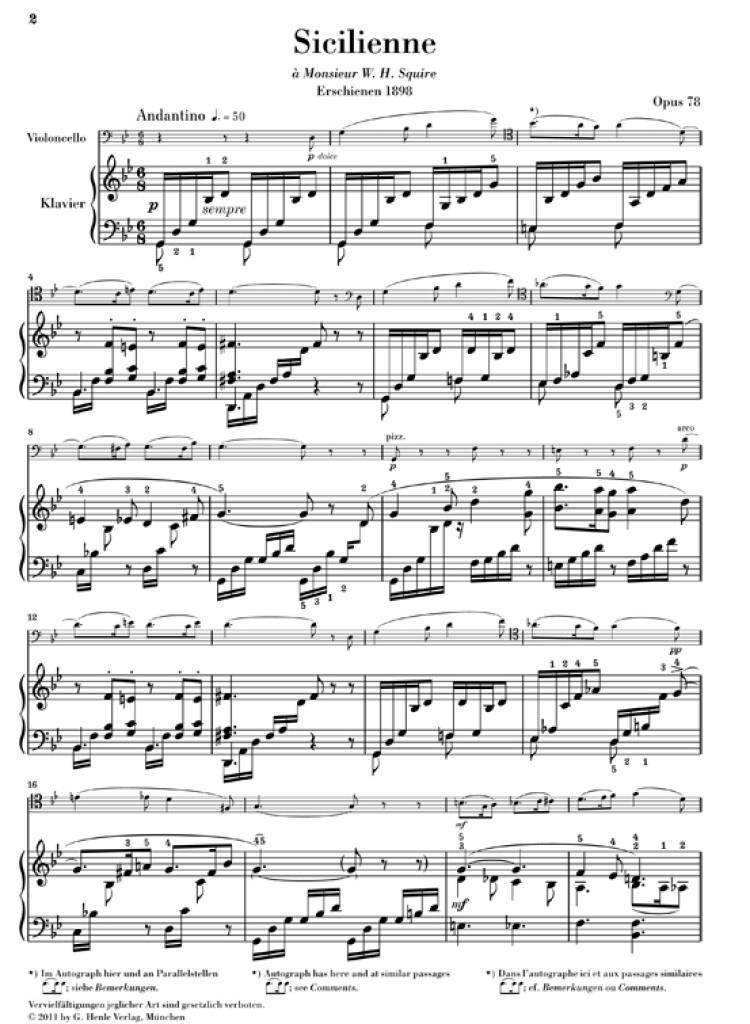 La composition pour violoncelle et piano dans le style d'une danse de Sicile vient de période intermédiaire de Gabriel Fauré, et a été 1898 en France et en Angleterre d'abord publié en parallèle - qui peut être interprété comme une indication de la popularité croissante Fauré international. Une plus grande sensibilisation gagné la pièce de caractère, avec ses accrocheur, mélodie mélancolique par l'inclusion dans la suite de Fauré à partir du puits en 1898, d'abord joué de la musique de scène pour Pelléas et Mélisande (dans une instrumentation pour orchestre).