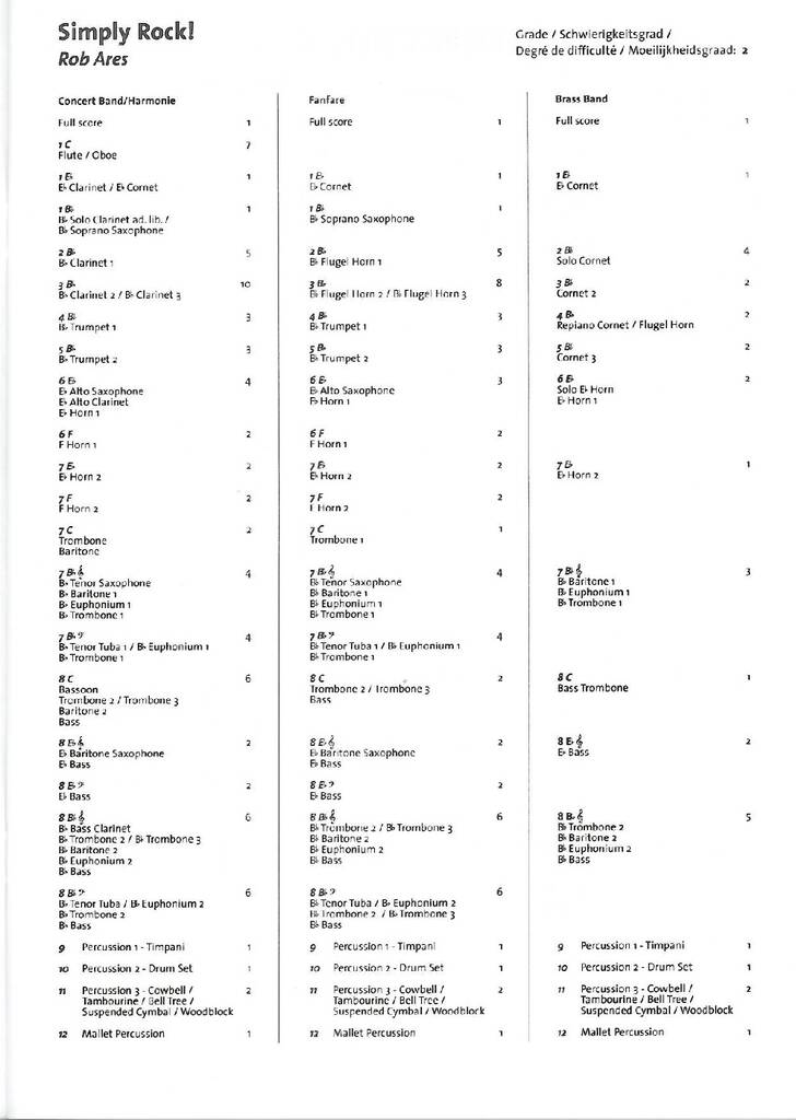 Avec Simply Rock!, Rob Ares vous propose une pièce moderne, rafraîchissante et vivifiante. Ce morceau comblera la fois les attentes des musiciens et du public. Les mélodies sont associées de riches motifs d’accompagnement pour constituer un véritable appel la danse. Une pièce solidement rock.