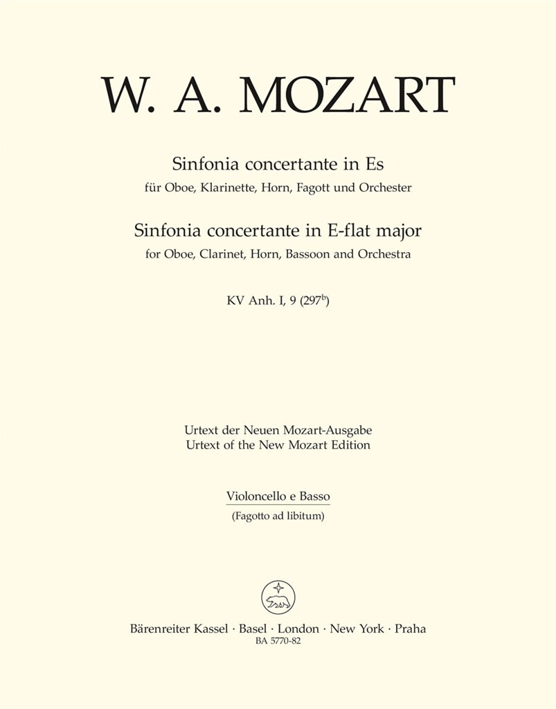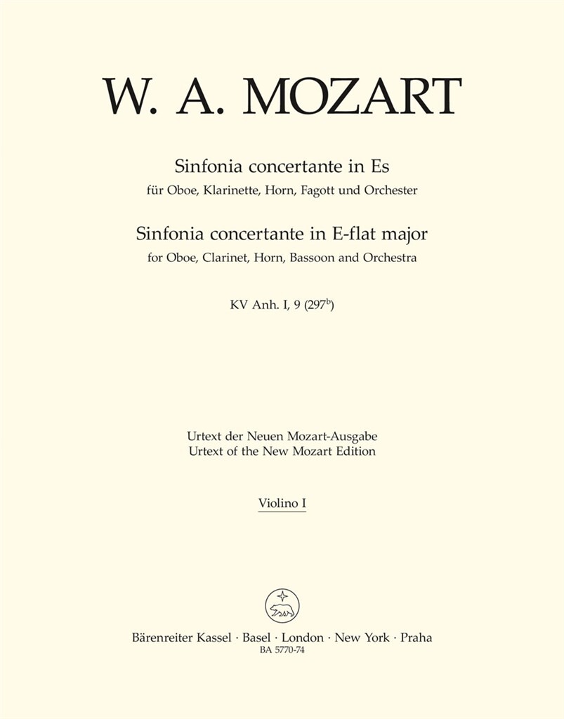 Sinfonia Concertante Für Oboe, Klarinette, Horn, Fagott Und Orchester MOZART WOLFGANG AMADEUS