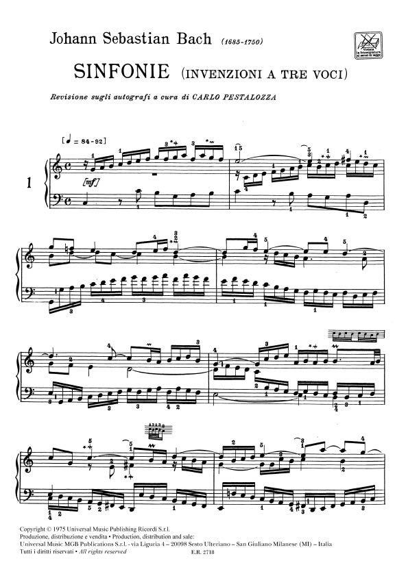 Sinfonie (Invenzioni A Tre Voci) Urtext BACH JOHANN SEBASTIAN