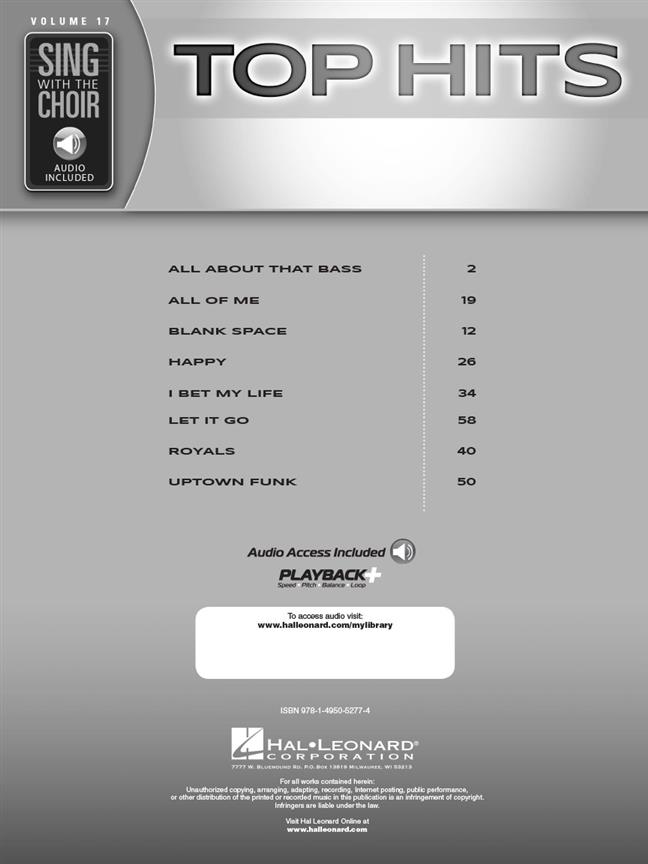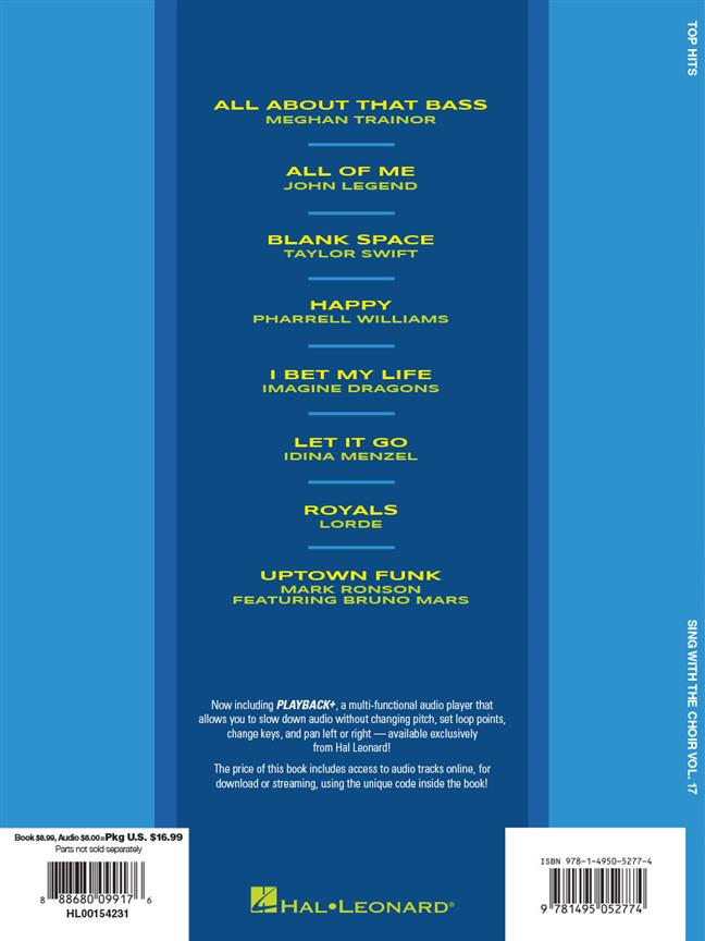 Cette excellente collection permet aux chanteurs de chanter huit tubes actuels au sein d’une chorale merveilleuse. Le livre comprend des parties SATB et l’audio en ligne propose des représentations complètes. Écoutez l’audio, ouvrez le livre, choisissez votre rôle, et chantez avec vous !