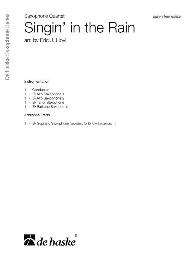 Dans le film du même titre, sorti en 1952, l'interprétation de cette chanson par Gene Kelly a séduit une multitude d'auditeurs au fil des années. " Singin' in the Rain " est parfaite pour tout type de quatuor, et Eic J. Hovi en a créé un arrangement facile pour quatuor de saxophones qui reste fidèle à l'esprit de la version originale.