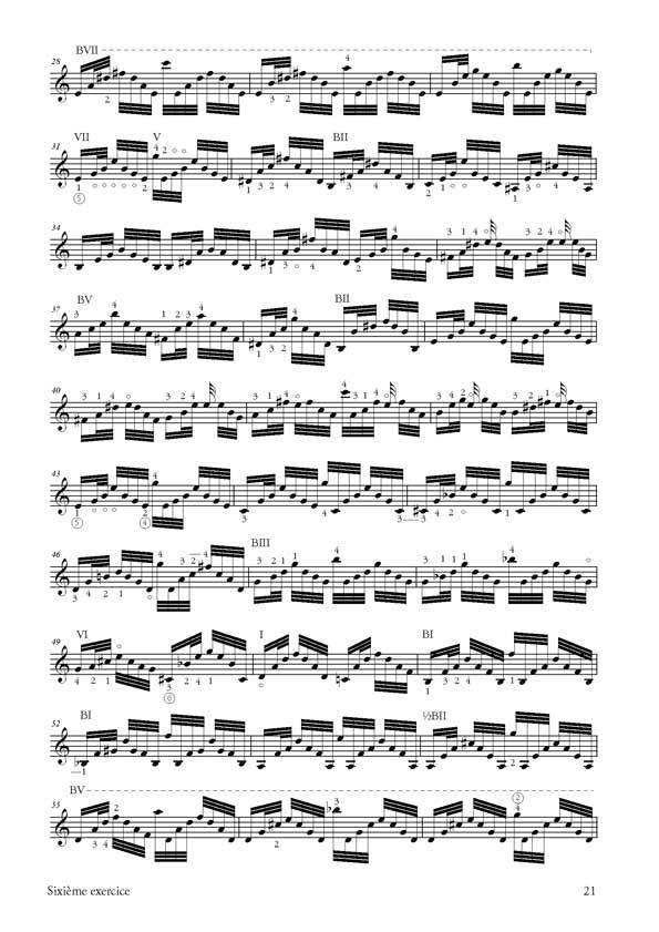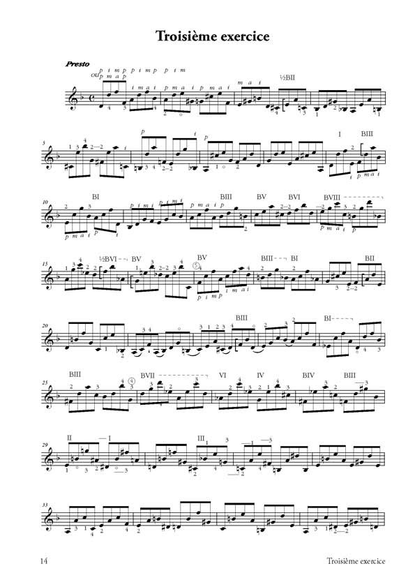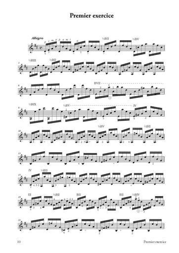 Ces exercices sont d'un bon niveau de difficulté et s'adressent à des guitaristes désireux de perfectionner leur technique tout en savourant des enchaînements harmoniques agréables et parfois surprenants. Ce sont finalement de véritables études dans le plus noble et musical sens du terme, qui donneront, à qui les jouera régulièrement, une solide assise technique tant pour l'agilité de la main gauche que pour la précision et la régularité du jeu de la main droite.