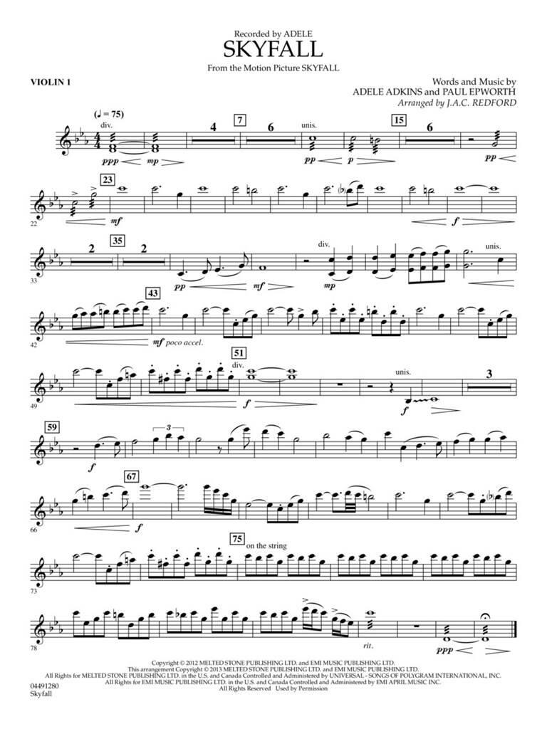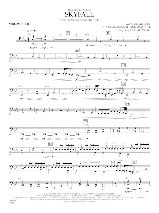 La chanson oscarisée d’Adele, telle qu’entendue dans le film de James Bond Skyfall. Le maître orchestrateur et arrangeur J.A.C. Redford a adapté sa version cinématographique pour orchestre symphonique complet. Comprend une batterie, une basse électrique et des parties optionnelles pour guitare et chorus SATB.