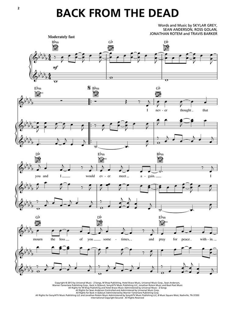 Ce livre de partitions correspondant comprend Piano, Voix et Guitare arrangements de tous les 12 titres, y compris entre les morts, C'mon Let Me Ride, S *** homme!, Portez-moi et plus.