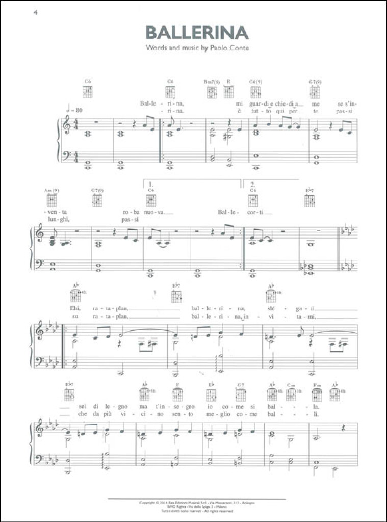 Folio assorti du dernier album du célèbre auteur-compositeur italien Paolo Conte.