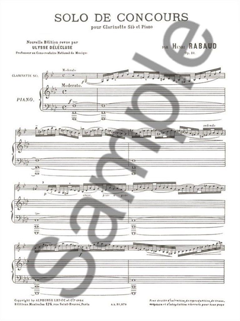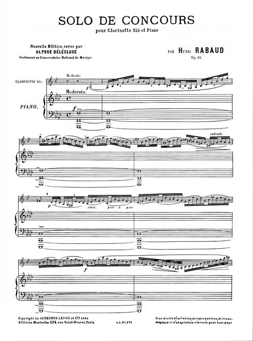 Written in 1901 for the Paris Conservatoire contest, Solo de Concours, Op. 10 for Clarinet by Henri Rabaud is a piece that has become very popular since its composition. Used five additional times for the contest, this piece was written for advanced clarinettists. Featuring three main parts, its cadenza is one of the most difficult parts of the piece and will require some strong technique and some patience to be played smoothly. Henri Rabaud (1873-1949) is a French conductor and composer and was director at the Paris Conservatoire. He composed many famous pieces, including this Solo de Concours, Op. 10 butalso a cantata 'Daphne' which won the Grand Prix de Rome, some operas ('Mârouf, savetier du Caire Op. 14', 'L'appel de la mer'), and some chamber music ('Andante et Scherzo for Flute, Violin and Piano Op. 8').