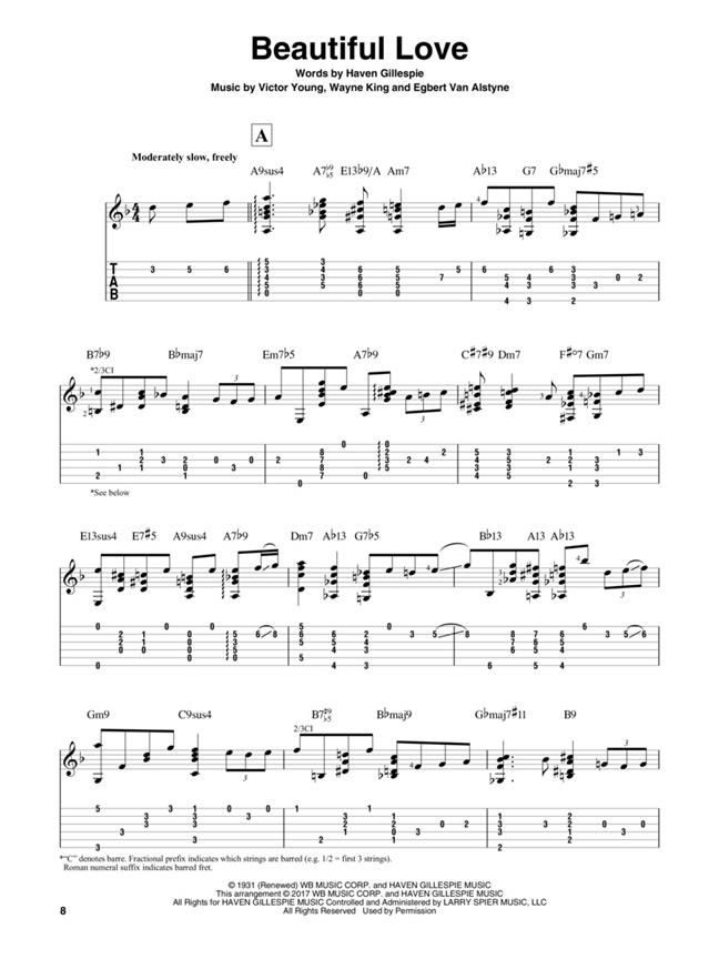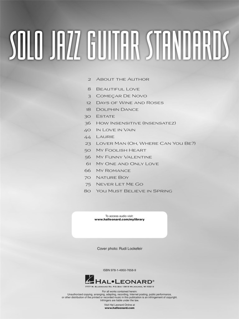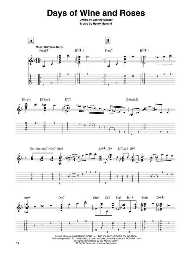 Jazz guitarist Matt Otten, who has over 23,000 subscribers on his YouTube page which includes hundreds of video lessons, has authored this book featuring 16 jazz guitar selections in standard notation and tab. Songs include: Beautiful Love - Comecar De Novo - Days of Wine and Roses - Dolphin Dance - Estate - How Insensitive (Insensatez) - In Love in Vain - Laurie - Lover Man (Oh, Where Can You Be?) - My Foolish Heart - My Funny Valentine - My One and Only Love - My Romance - Nature Boy - Never Let Me Go - You Must Believe in Spring.