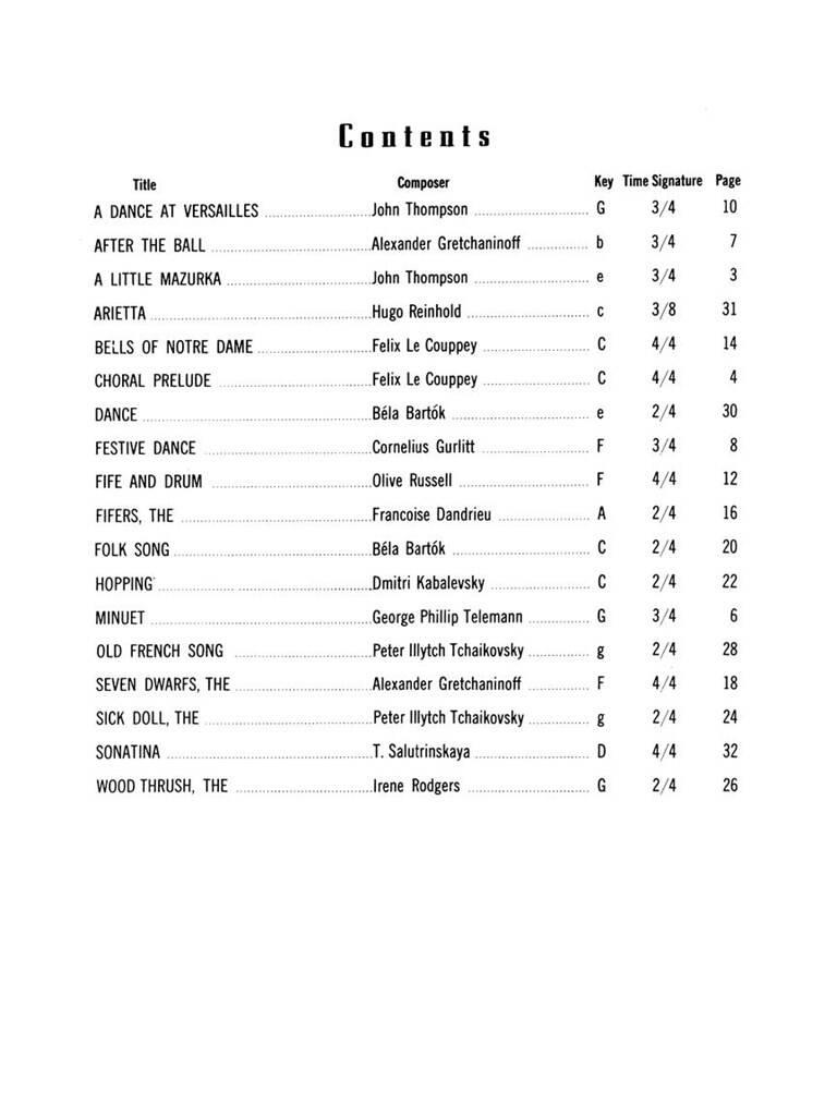 Une collection de solos de piano pour débuts intermédiaires compilée et éditée par le célèbre compositeur William Gillock.