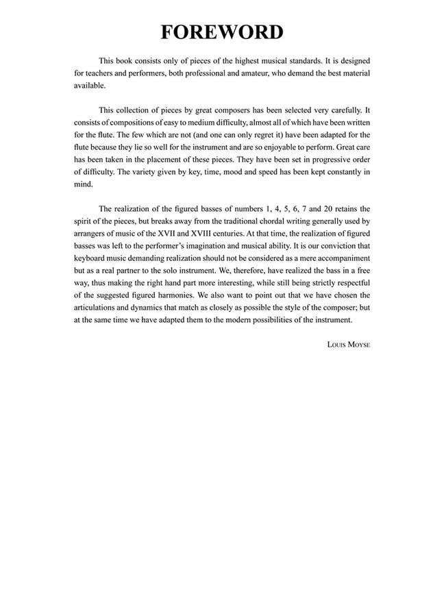 Une collection de 21 pièces par de grands compositeurs, facile à moyenne difficulté en ordre progressif, la plupart ont été à l'origine écrit pour flûte. Sélectionné et édité par Louis Moyse. Le CD comprend les accompagnements au piano qui sont jouables à la fois sur votre lecteur de CD et l'ordinateur. Il est également renforcée avec le logiciel le réglage du tempo quand il est utilisé dans votre ordinateur comme un lecteur de CD-ROM.