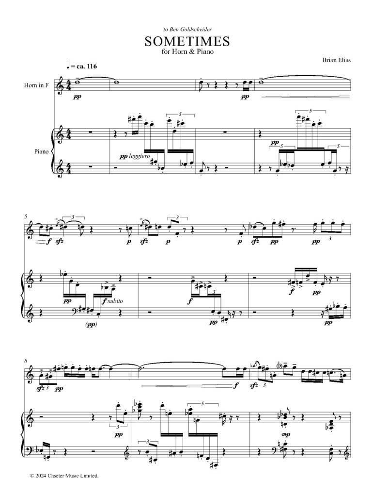 Sometimes est une courte pièce pour cor et piano qui a été créée mondialement au Festival d’Aldeburgh en 2025. Il est dédié aux interprètes Ben Goldscheider et Huw Watkins.